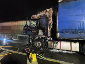 V úterý dopoledne zasahovali policisté a hasiči na dálnici D5 v kilometru 4,5 ve směru na Prahu, kde došlo k požáru nákladního vozidla. Z oznámení nebylo zřejmé, zda se uvnitř nachází osoba, proto hlídka Policie ČR okamžitě vyjela na místo. Po příjezdu byla již kabina vozidla v plamenech a jednotky Hasičského záchranného sboru prováděly hašení. Policisté zároveň zajišťovali bezpečnost provozu a zjišťovali okolnosti události.